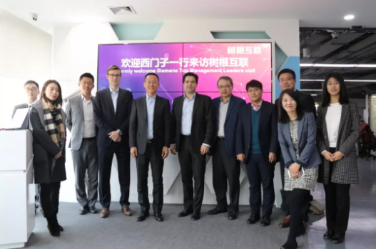 11月30日,西門子股份公司物聯網業務負責人Aymeric Sarrazin ,西門子咨詢首席執行官Jan Rabe ,西門子(中國)有限公司執行副總裁、西門子中國研究院院長朱驍洵等一行來到樹根科技技術有限公司訪問參觀。