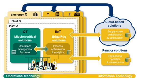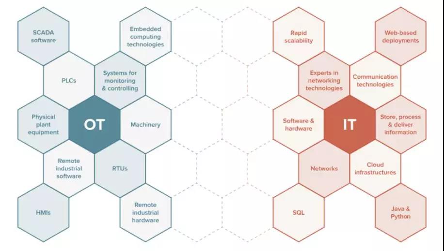即使存在這些差異,而現在正好存在這樣的機會 讓 OT 和 IT 相互融合, 通過提升各自的能力,從而形成一種真正具有顛覆性的技術。在工業 3.0 的時代, OT 和 IT 保持著彼此相互的分割。而為了滿足今天的 數據密集型的環境和進入工業 4.0,企業必須將 OT 和 IT 交匯融合匹配。