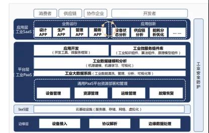因此,工業互聯網平臺自下而上分別為解決設備互聯的邊緣層、云基礎設施所在的IaaS層、平臺層PaaS層和工業應用層SaaS層。
