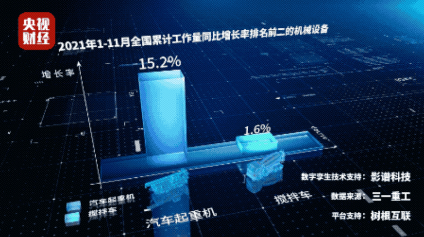 1至11月,全國累計工作量同比增長率排名前二的機械設備,依次為汽車起重機、攪拌車,增幅分別為15.2%、1.6%。