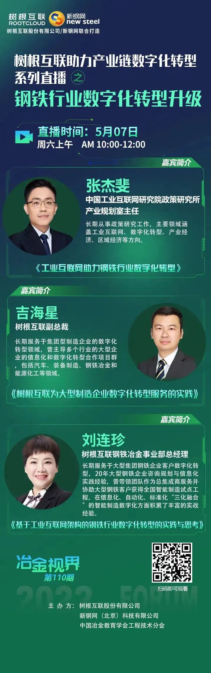 2022年5月7日,樹根科技聯(lián)合新鋼網(wǎng)舉辦助力產(chǎn)業(yè)鏈數(shù)字化轉(zhuǎn)型系列直播之“鋼鐵行業(yè)數(shù)字化轉(zhuǎn)型升級”活動,特邀數(shù)字化轉(zhuǎn)型專家們帶來鋼鐵行業(yè)的專業(yè)分享,歡迎各位關注參與本次線上直播活動。
