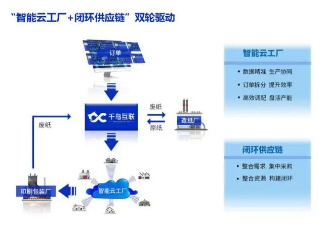 工業(yè)互聯(lián)網(wǎng)技術(shù)在各行各業(yè)的應(yīng)用不僅帶來(lái)了創(chuàng)新商業(yè)模式,還在賦能產(chǎn)業(yè)鏈上下游升級(jí)方面表現(xiàn)突出。千鳥互聯(lián)的一系列產(chǎn)品與服務(wù),端到端打通造紙廠、紙貿(mào)商、印刷包裝廠、廢紙打包站多個(gè)角色,形成從包裝訂單生產(chǎn)到原紙?jiān)俚綇U紙的數(shù)字化業(yè)務(wù)閉環(huán),實(shí)現(xiàn)供應(yīng)鏈整體的降本增效。