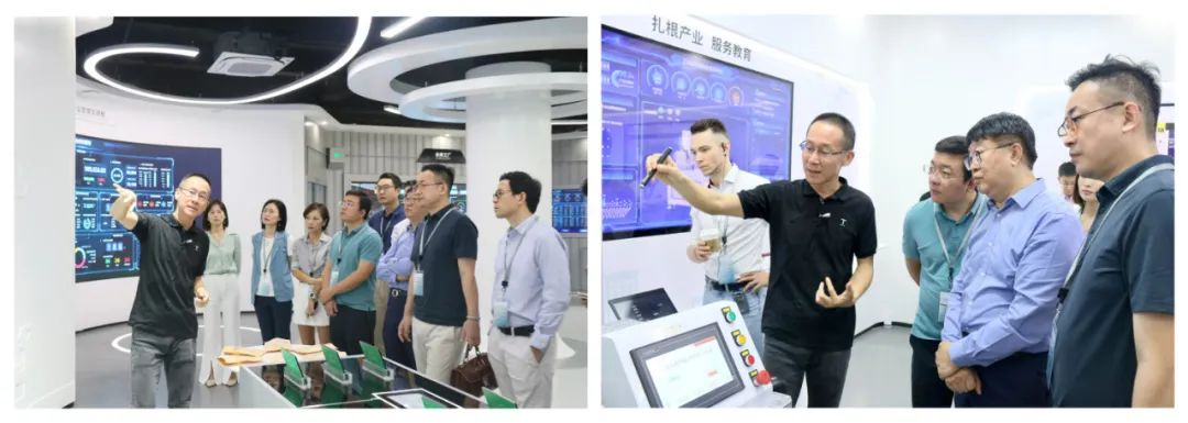 樹根科技聯合創始人、CEO賀東東帶領同學們參觀樹根科技數字化展廳,深入了解樹根科技在賦能工業企業智能化管理、產業鏈協同等方面的應用實踐。隨后,賀東東與同學們就工業企業數字化轉型,推動數字化供應鏈與商業模式創新等話題進行深入交流。