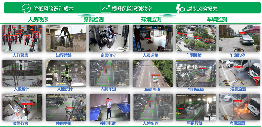 安全無(wú)小事,責(zé)任大于天。為降低鋼廠風(fēng)險(xiǎn)識(shí)別成本,提升風(fēng)險(xiǎn)識(shí)別效率,根云平臺(tái)利用計(jì)算機(jī)視覺(jué)技術(shù)、Al中臺(tái),通過(guò)對(duì)監(jiān)控視頻分析,可實(shí)現(xiàn)對(duì)現(xiàn)場(chǎng)(人的不安全行為)、現(xiàn)物(物的不安全狀態(tài))以及現(xiàn)實(shí)(環(huán)境的不安全因素)實(shí)時(shí)辨別,現(xiàn)有40+種算法,可有效為安全生產(chǎn)保駕護(hù)航。