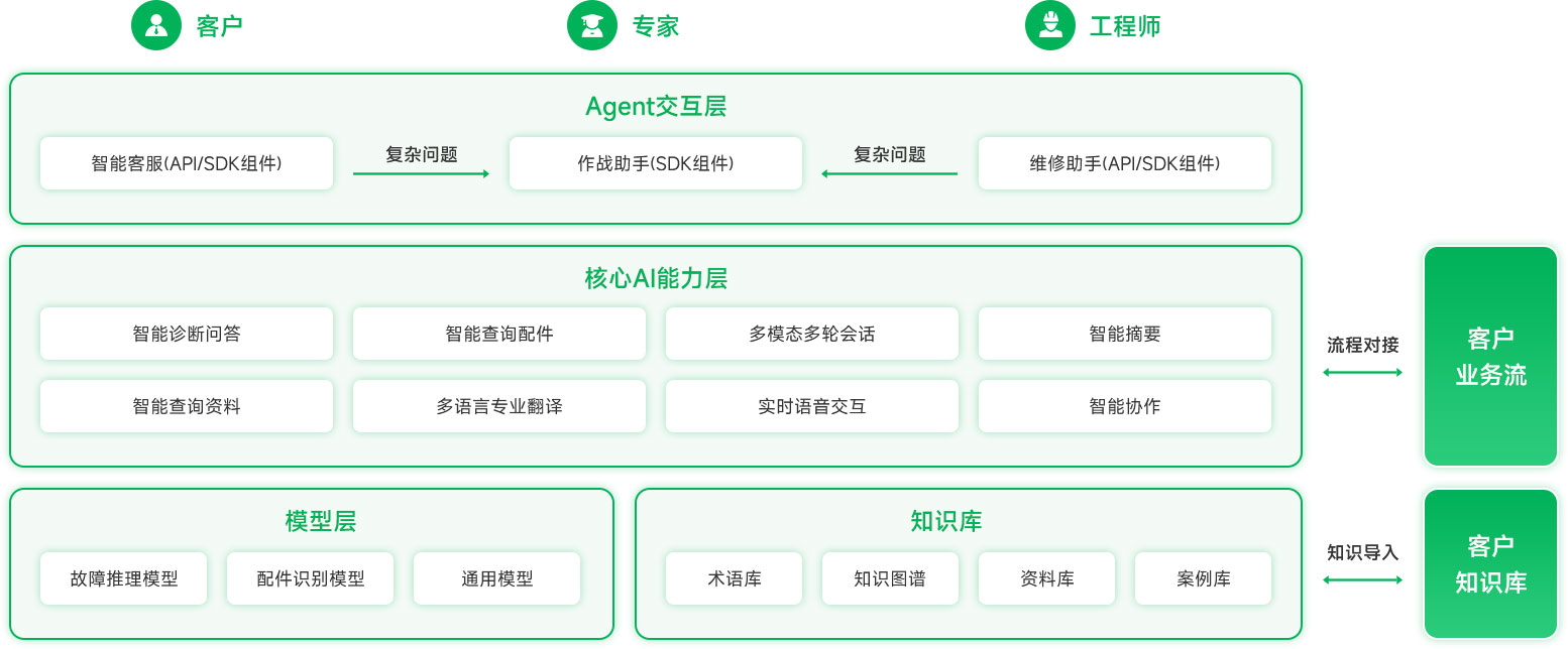樹根智能售后方案,是基于您的專屬行業和企業知識所訓練的AI服務能力,能夠提供更加垂直和深度的AI能力,避免通用大模型的“幻覺”問題。